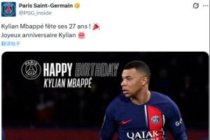 體育資訊12月20日訊 今天是法國(guó)前鋒姆巴佩27歲生日,他的老東家巴黎圣日耳曼在社媒為姆巴佩送上生日祝福。