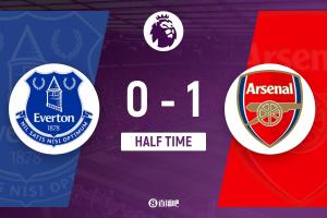 半場(chǎng)-阿森納1-0埃弗頓 奧布萊恩手球送點(diǎn)約克雷斯點(diǎn)射建功