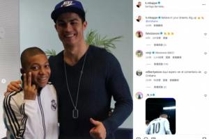 和偶像并肩!姆巴佩社媒@C羅并曬兒時合影:相信夢想,致敬王者!