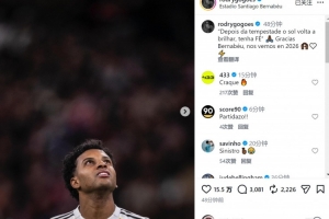 羅德里戈賽后社媒寫(xiě)道:“‘風(fēng)雨過(guò)后,陽(yáng)光總會(huì)重現(xiàn),保持信念????’感謝伯納烏,2026年再見(jiàn)?!?/p>