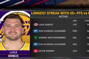 球員VS球隊(duì)連續(xù)25+紀(jì)錄排名: