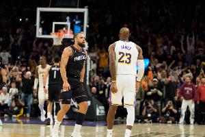 今天,ESPN預測本場比賽勝率,湖人45.8%,太陽54.2%。