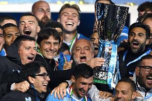 那不勒斯對孔蒂充滿熱情,德勞倫蒂斯的下一個目標是開啟與這位教頭的合作周期??椎僭诓坏揭粋€半賽季的時間里,已經為那不勒斯帶來了兩項冠軍。主席在利雅得之夜的言辭充滿激情,仿佛是對孔蒂的正式任命:“自1990年以后,我們再也沒有見過如此的雙冠成就,只有馬拉多納做到過。”