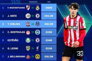 體育資訊8月28日訊 德國轉(zhuǎn)會(huì)市場盤點(diǎn)了今夏轉(zhuǎn)會(huì)費(fèi)最高的U19球員,馬斯坦托諾排名第一。