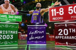 轉(zhuǎn)播方ESPN曬出數(shù)據(jù):詹姆斯2003年參加圣誕大戰(zhàn)時(shí)18歲360天,歷史最年輕。