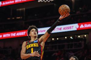 上半場,老鷹球員杰倫·約翰遜表現不錯,場上依舊很全能,在19分鐘的時間里,投籃7中4,三分球2中0,罰球3中2,拿到10分5籃板6助攻的數據。