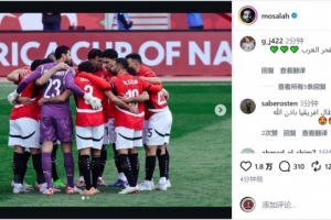 薩拉赫更新社媒動態(tài),曬出埃及球員們在球場上搭肩擁抱、圍成一圈的照片,慶祝球隊晉級淘汰賽。