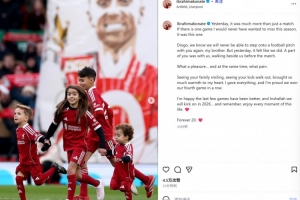 “迪奧戈,我知道我們?cè)僖矡o法和你一起踏上足球場(chǎng)了,我的兄弟。但昨天的感覺就像我們又在一起并肩作戰(zhàn)一般。你的一部分與我們同在,賽前就陪伴在我們身邊。”