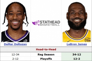 據(jù)統(tǒng)計,詹姆斯常規(guī)賽生涯面對德羅贊戰(zhàn)績來到35勝12負(fù),季后賽為12勝2負(fù)。