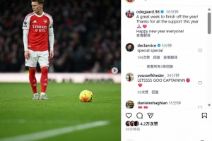 本場比賽厄德高送出精彩助攻,他也在個人社媒曬出本場照片,配文寫道:“以出色的一周結束今年賽程,感謝大家一年以來的支持,祝大家新年快樂!”