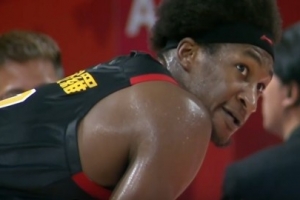 深圳外援卡巴上半場(chǎng)替補(bǔ)出場(chǎng)存在感十足,進(jìn)攻端多次上演暴扣,防守端還多次送出蓋帽。