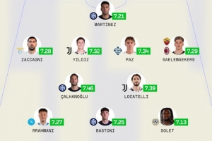 后衛(wèi):拉赫馬尼(那不勒斯,7.27分)、巴斯托尼(國(guó)米,7.25分)、歐馬·索勒(烏迪內(nèi)斯,7.13分)