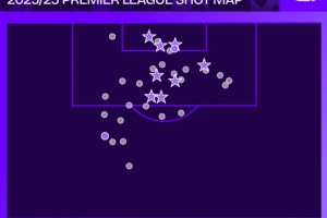 數(shù)據(jù)統(tǒng)計(jì)顯示,?;倏吮举惣居⒊?5次射門、10次射正便打進(jìn)8球,主客場(chǎng)各進(jìn)4球。而他的其他隊(duì)友本賽季英超最多也僅有4球。