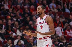 火箭球星杜蘭特戰(zhàn)舊主上半場(chǎng)三分沒(méi)開(kāi),他出戰(zhàn)19分鐘,10投5中,三分3中0,罰球2中2,得到了12分3籃板6助攻,正負(fù)值+6。