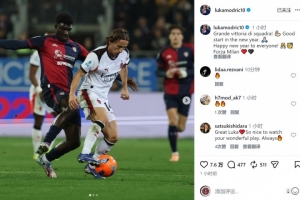 莫德里奇社媒曬出比賽照片,并寫道:“精彩的團(tuán)隊勝利!為新年開了個好頭。祝大家新年快樂!加油米蘭?!?/p>