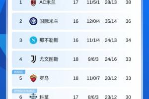 體育資訊01月04日訊 意甲第18輪,羅馬客場0-1不敵亞特蘭大,尤文1-1萊切升第4,最新積分榜如下: