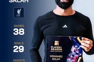 薩拉赫在上賽季為利物浦出戰(zhàn)的38場(chǎng)英超比賽中打進(jìn)29粒進(jìn)球,并送出18次助攻。