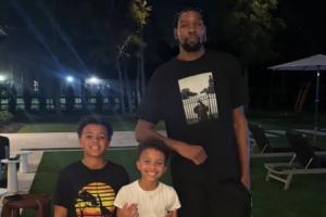 體育資訊09月15日訊 現(xiàn)火箭隊(duì)球探、前火箭球員DJ-奧古斯汀今日更新Instagram,曬出了自己倆兒子和杜蘭特的合影,并寫道:“杜叔叔@杜蘭特?!?/p>