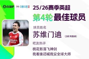 2025-2026賽季英超火熱進行中,體育資訊和咪咕體育聯(lián)合發(fā)起每輪英超最佳球員評選活動!第四輪評選結果結出爐,蘇維門迪頭頂腳踢梅開二度,幫助阿森納3-0大勝諾丁漢森林,獲得吧友超14萬票的支持,以絕對優(yōu)勢當選 【體育資訊X咪咕體育英超第4輪最佳球員】!