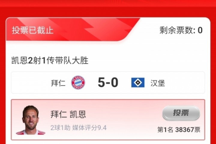 第三輪評選結(jié)果結(jié)出爐,凱恩2射1傳,幫助拜仁5-0大勝漢堡,獲得吧友近4萬票的支持,擊敗格里馬爾多當(dāng)選 【體育資訊X小紅書德甲第3輪最佳球員】!