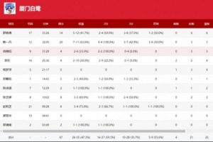 本場比賽,廈門女籃開局慢熱的情況下通過三分首節(jié)領(lǐng)先,但次節(jié)突然斷電半節(jié)僅得4分,半場被對手拉開近10分領(lǐng)先;下半場,進攻端還是略顯急躁連續(xù)失誤,被對手抓住機會擴大領(lǐng)先,末節(jié)雖然還是能拼能搶,但無奈對手牢牢掌握主動權(quán),最終遺憾落敗。球隊數(shù)據(jù)統(tǒng)計上,廈門女籃本場失誤控制不好,有多達20個,而對手則13個;前場籃板更是4-16比對手少12個。