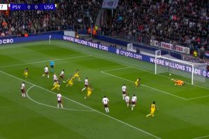 比賽第9分鐘,埃因霍溫防守球員禁區(qū)內(nèi)解圍時(shí)踢倒對(duì)方送點(diǎn),普羅米斯-戴維主罰一蹴而就!