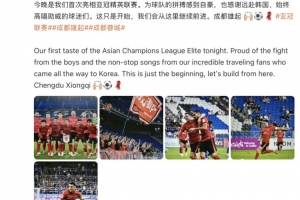 在蓉城隊(duì)史首場(chǎng)亞冠正賽惜敗之后,周定洋在社媒曬出現(xiàn)場(chǎng)照片并配文寫(xiě)道:“今晚是我們首次亮相亞冠精英聯(lián)賽。為球隊(duì)的拼搏感到自豪,也感謝遠(yuǎn)赴韓國(guó)、始終高唱助威的球迷們。這只是開(kāi)始,我們會(huì)從這里繼續(xù)前進(jìn)。成都雄起 ????????”