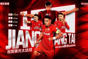 在新賽季亞冠精英聯賽首場上海海港0比3神戶勝利船的比賽中,蔣光太首發(fā)出戰(zhàn),達成其個人代表俱樂部出戰(zhàn)各項賽事的百場里程碑。