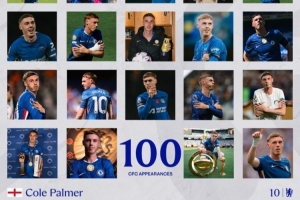 切爾西官方也曬出了海報(bào)為帕爾默作為紀(jì)念,并配文:“帕爾默在今晚完成了切爾西生涯第100場(chǎng)里程碑?!?/p>