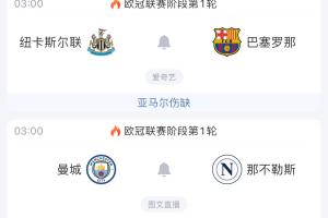 歐冠聯(lián)賽階段首輪明晨將迎來(lái)第3個(gè)比賽日,紐卡vs巴薩,曼城vs那不勒斯,勒沃庫(kù)森也將出戰(zhàn)。