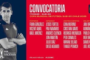 西班牙足協(xié)在官網(wǎng)寫道:“西班牙U20國(guó)家隊(duì)即將出征智利世界杯,21名年輕球員將肩負(fù)榮譽(yù)與夢(mèng)想,迎接這一全球最負(fù)盛名的青年足球賽事。主教練帕科-加拉爾多在周三公布了參賽名單,球隊(duì)將于9月22日啟程,以最佳狀態(tài)迎接比賽的到來?!?/p>