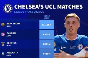 切爾西本賽季歐冠對(duì)手身價(jià):