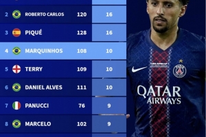 92-93賽季以來歐冠后衛(wèi)進(jìn)球榜: