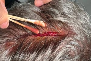 國(guó)安翻譯賽后曬出塞蒂恩傷口,他的頭頂被劃出一道大口子。