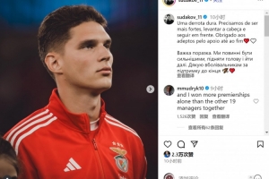 效力于本菲卡的烏克蘭中場蘇達(dá)科夫賽后在ins上寫道:“一場慘痛的失利,我們需要更堅強,昂首挺胸繼續(xù)前進(jìn),感謝球迷們直到最后的支持?!?/p>