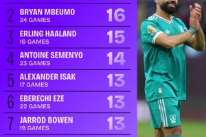 體育資訊9月19日訊 數(shù)據(jù)網(wǎng)站Squawka盤點(diǎn)了2025年英超參與進(jìn)球榜(進(jìn)球+助攻),薩拉赫居首,具體如下: