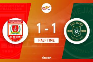 上半場(chǎng)補(bǔ)時(shí)4分鐘。半場(chǎng)戰(zhàn)罷,長(zhǎng)春亞泰1-1浙江隊(duì)。