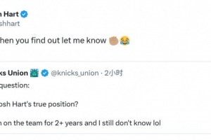 體育資訊9月21日訊 尼克斯球員哈特在社媒轉(zhuǎn)發(fā)了一則動(dòng)態(tài),原文寫(xiě)的是:“看了尼克斯兩個(gè)賽季球了,但依舊沒(méi)搞懂,哈特真正打的位置是什么的?”