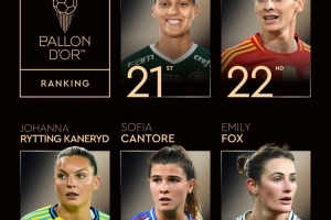 體育資訊9月22日訊 2025女足金球獎第21-25名公布: