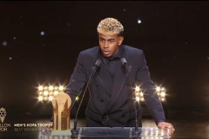 體育資訊09月23日訊 2025年金球獎頒獎典禮,亞馬爾連續(xù)第二年獲得科帕獎,他也發(fā)表了獲獎感言。