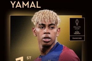 自2018年設(shè)立以來(lái),科帕獎(jiǎng)已頒發(fā)七屆,姆巴佩、德里赫特、佩德里、加維、貝林厄姆各獲得一次,亞馬爾獲兩次。