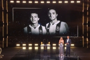 體育資訊9月23日訊 2025年金球獎(jiǎng)?lì)C獎(jiǎng)典禮正在進(jìn)行,典禮現(xiàn)場(chǎng)播放了一段短片,悼念7月因車禍去世的若塔兄弟。