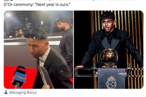 在頒獎典禮結(jié)束后,亞馬爾的父親穆尼爾-納斯拉維在接受采訪時表示:“明年是我們的”。
