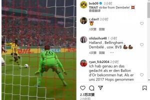 登貝萊老東家多特官方更新社媒動(dòng)態(tài),曬出登貝萊效力多特期間精彩進(jìn)球的視頻,配文:“現(xiàn)在他已是金球獎(jiǎng)得主?!?/p>