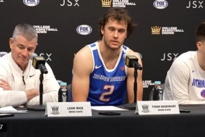 德根哈特22歲,身高6尺7,體重235磅。在代表博伊西州立大學(xué)出戰(zhàn)的138場比賽中,場均能得到14.8分5.3籃板1.4助攻1.1次搶斷,三項(xiàng)命中率分別為52%、35%、78%。