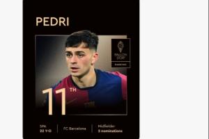 體育資訊09月23日訊 2025年金球獎頒獎典禮在北京時間今天凌晨進行,佩德里僅排在第11位。