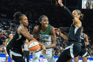 作為聯(lián)盟中的傳統(tǒng)強隊,拉斯維加斯王牌在首輪遭遇了西雅圖風(fēng)暴的頑強抵抗。系列賽首戰(zhàn),王牌展現(xiàn)出強大的統(tǒng)治力,以102-77的懸殊比分大勝風(fēng)暴,阿賈-威爾遜全場砍下29分8籃板,杰基-楊也有18分7助攻入賬,王牌憑借出色的進攻效率和強硬的防守,早早確立了領(lǐng)先優(yōu)勢。?