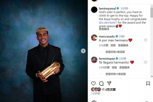 體育資訊9月23日訊 亞馬爾更新社媒動態(tài),慶祝獲得科帕獎,并祝賀登貝萊斬獲金球獎。