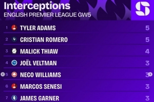 英超第5輪攔截榜:
