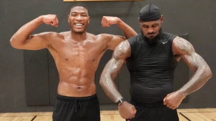 體育資訊9月24日訊 今日NBA訓(xùn)練師Chris Johnson更新IG曬出一張湖人球星詹姆斯與八村塁的訓(xùn)練照。
